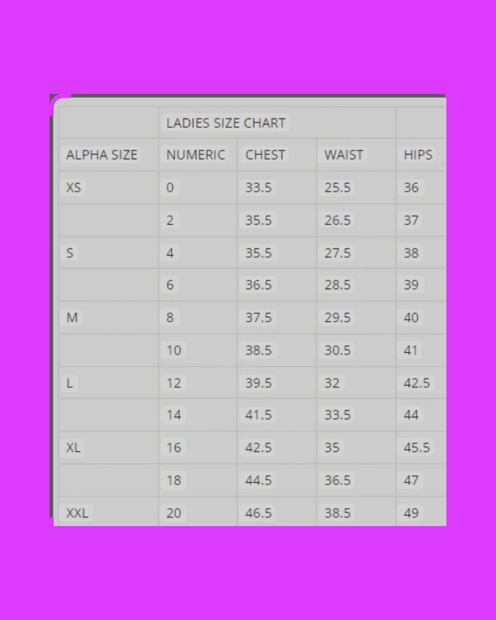 • Size Chart